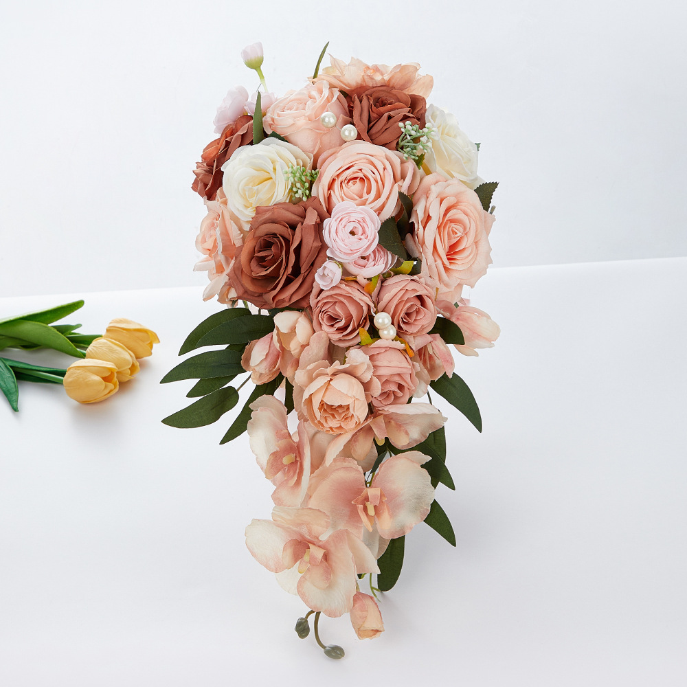 洋風の滝の水滴型の花嫁は花の真珠のバラの2色のpeの花の結婚の贈り物の結婚の贈り物の卸売りを持ちます。