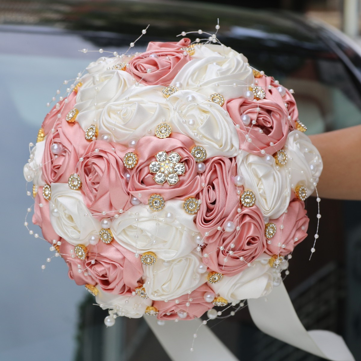新製品の現物布芸の手は花の真珠のサテンの新婦のリボンを持って花の越境の源のメーカーのw 0630gを持ちます。