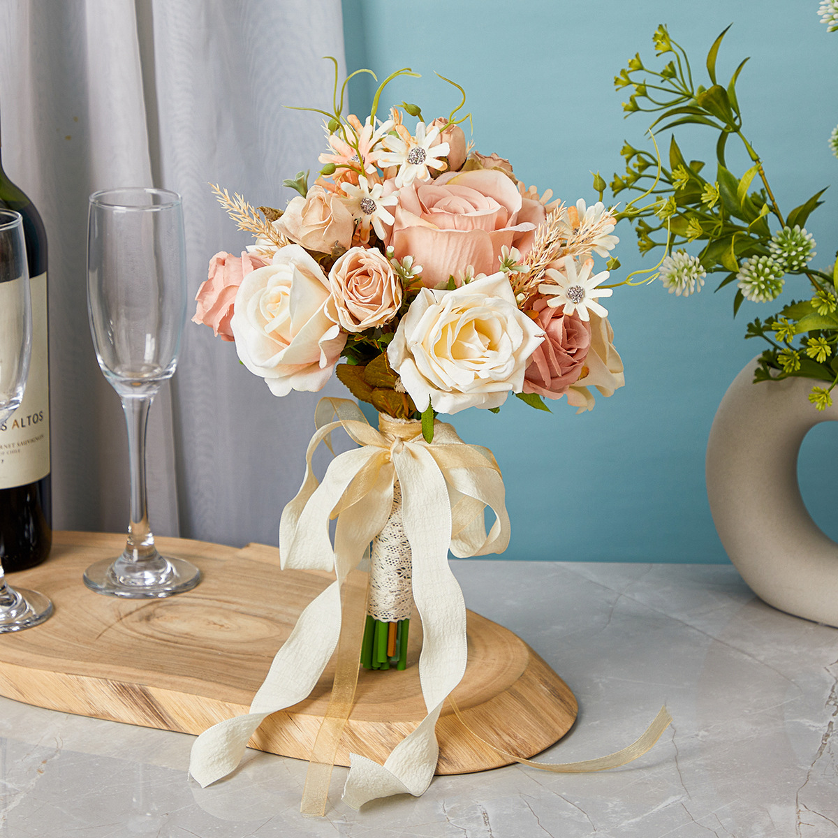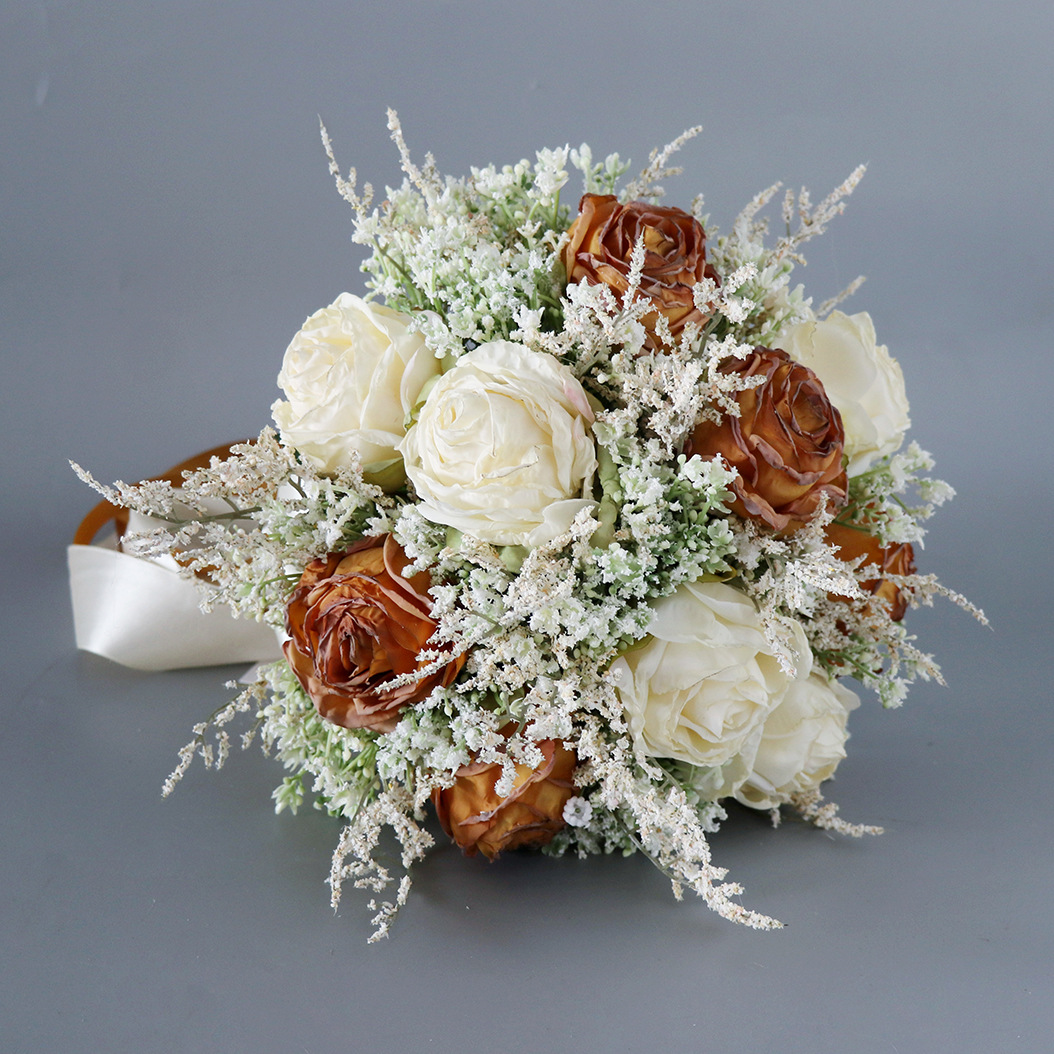 国境を越えた売れ筋のウェディングブーケ、模擬バラのフラワースタジオ、花嫁撮影小道具、西洋の森スタイルの手持ちブーケ