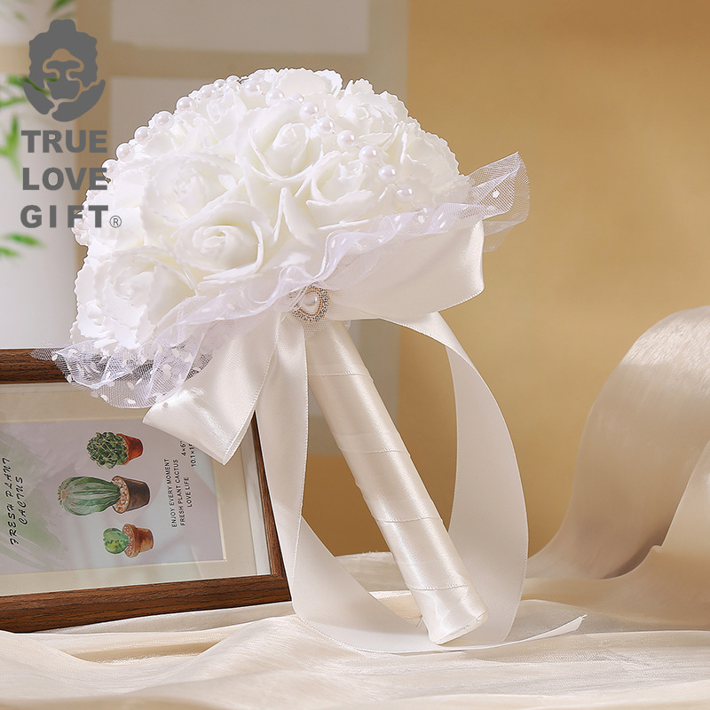 ブライダルブーケ、造花、白い結婚式の写真、韓国の撮影小道具、証明書の花の装飾