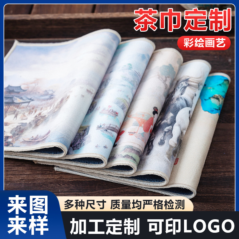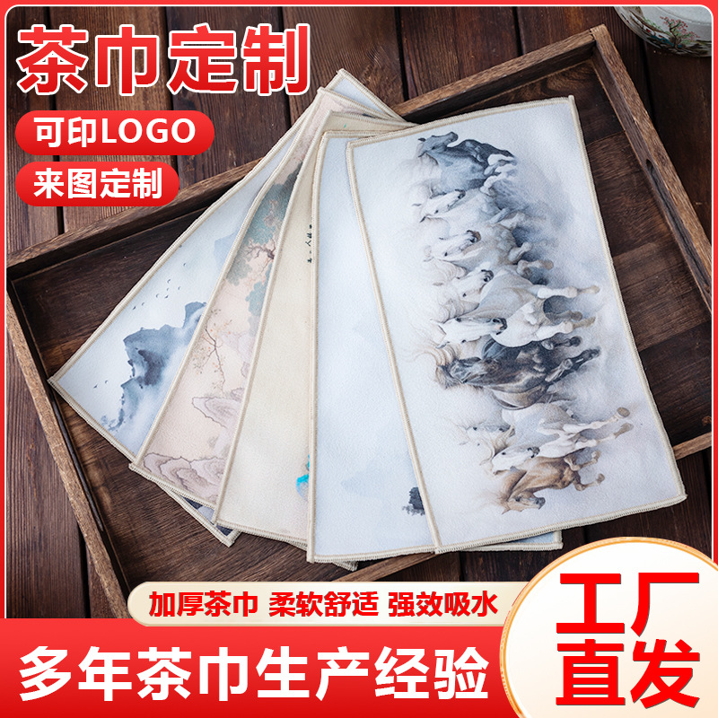 工夫茶巾両面吸水中国式プリント茶席防水泡茶マットテーブルクロスタオルサンゴパイルはロゴを付けることができる