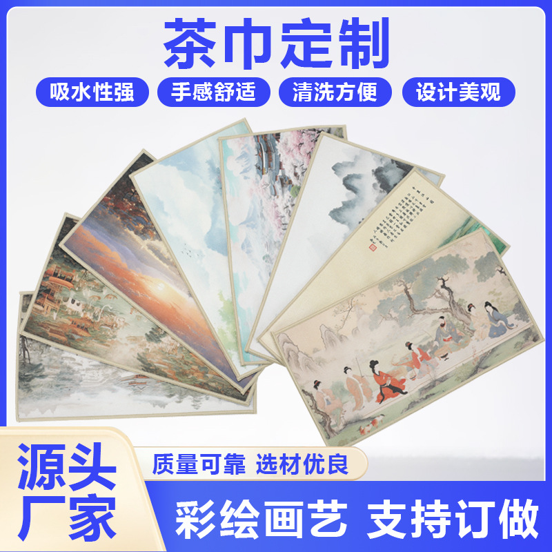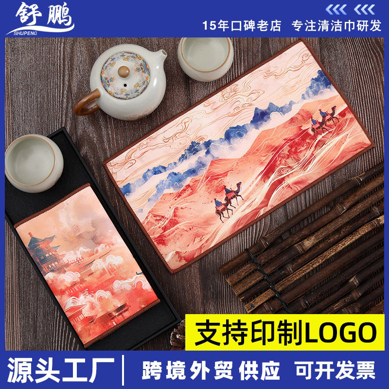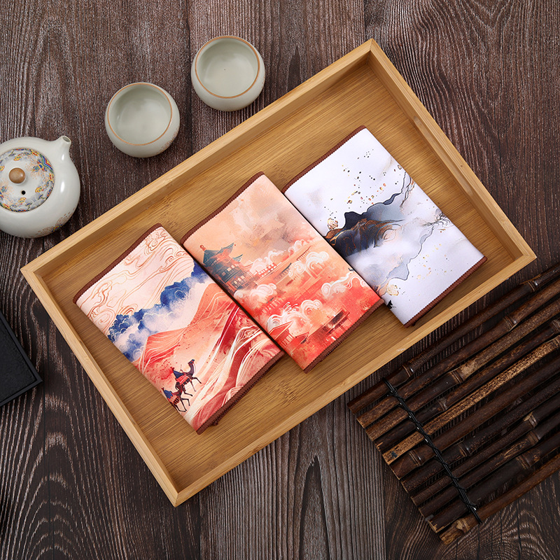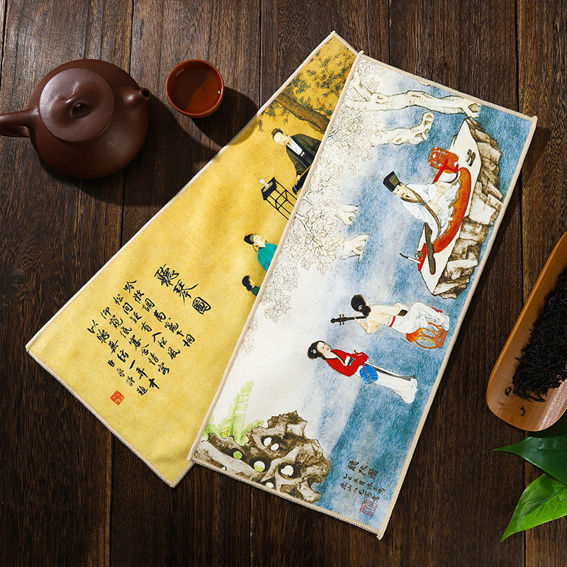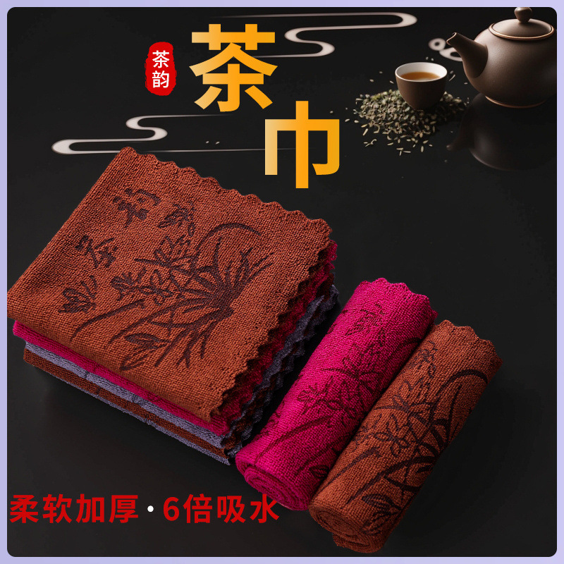 スエードカンフーティータオル、国民的トレンド、古代スタイル、厚みのある、吸水性、糸くずの出ない、多機能、高級塗装茶布卸売