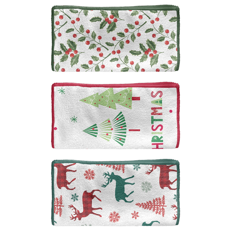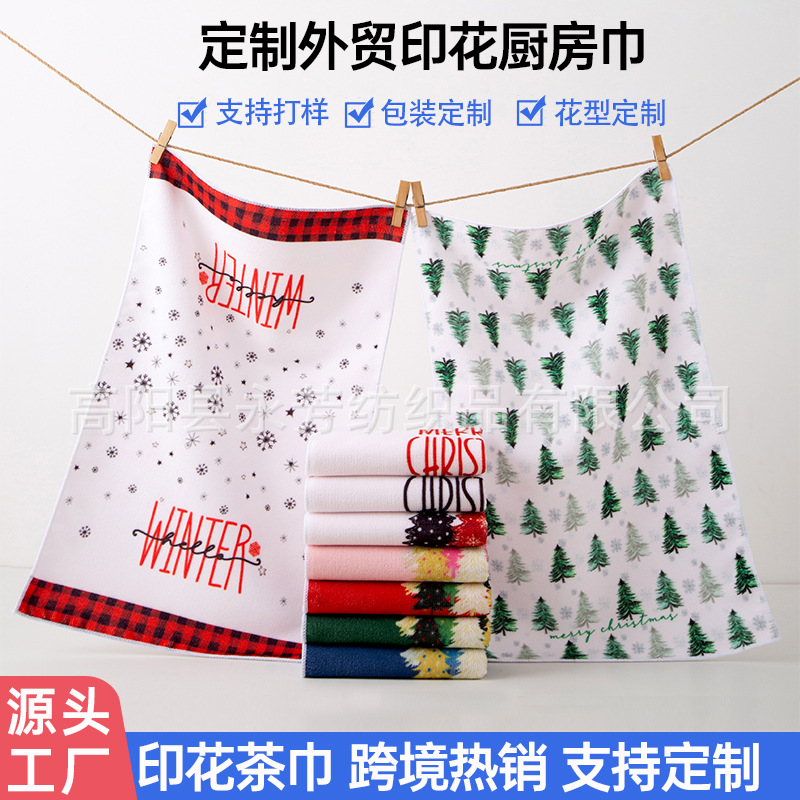 クロスボーダーマイクロファイバーキッチンタオルサンタクロースソフト吸水速乾ハンドタオルプリントティータオル卸売