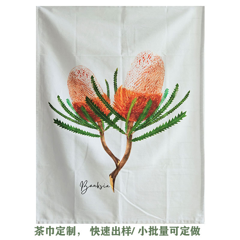 絵と企業ロゴでカスタマイズされた綿デジタルプリントティータオル、花と植物の綿ティータオル、吊り下げ絵画パッド
