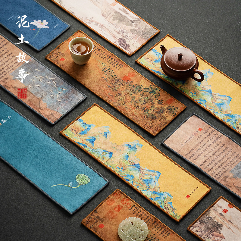ティータオル、高級塗装スエードカンフーティータオル、古代王朝スタイル、多機能増粘吸水性ポットティータオル、ティーマット