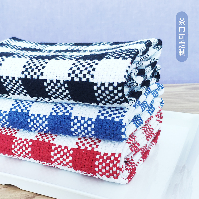全棉色织茶巾大井字抹布厨房洗碗巾外贸出口可指定logo茶具