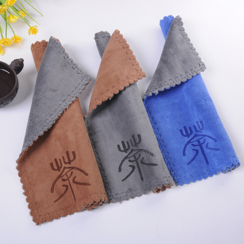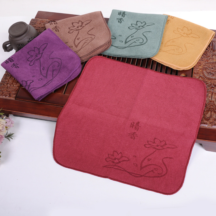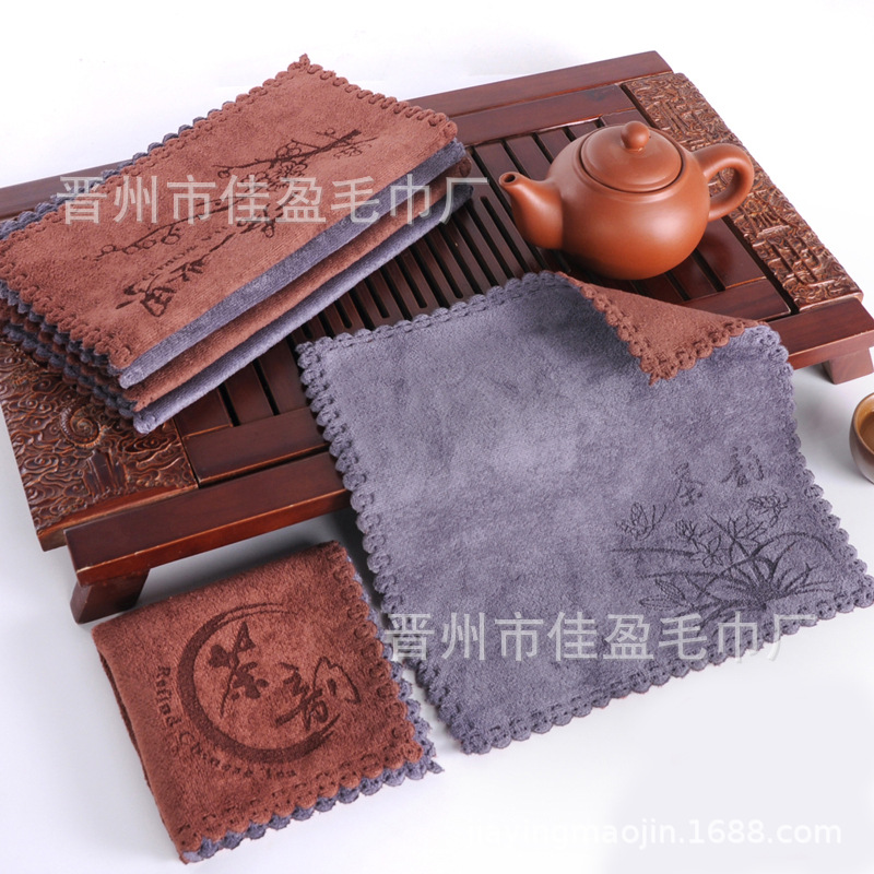 メーカー卸売り両面パイル極細繊維刺繍手描き茶巾ナプキン布快乾吸水洗浄角茶器部品