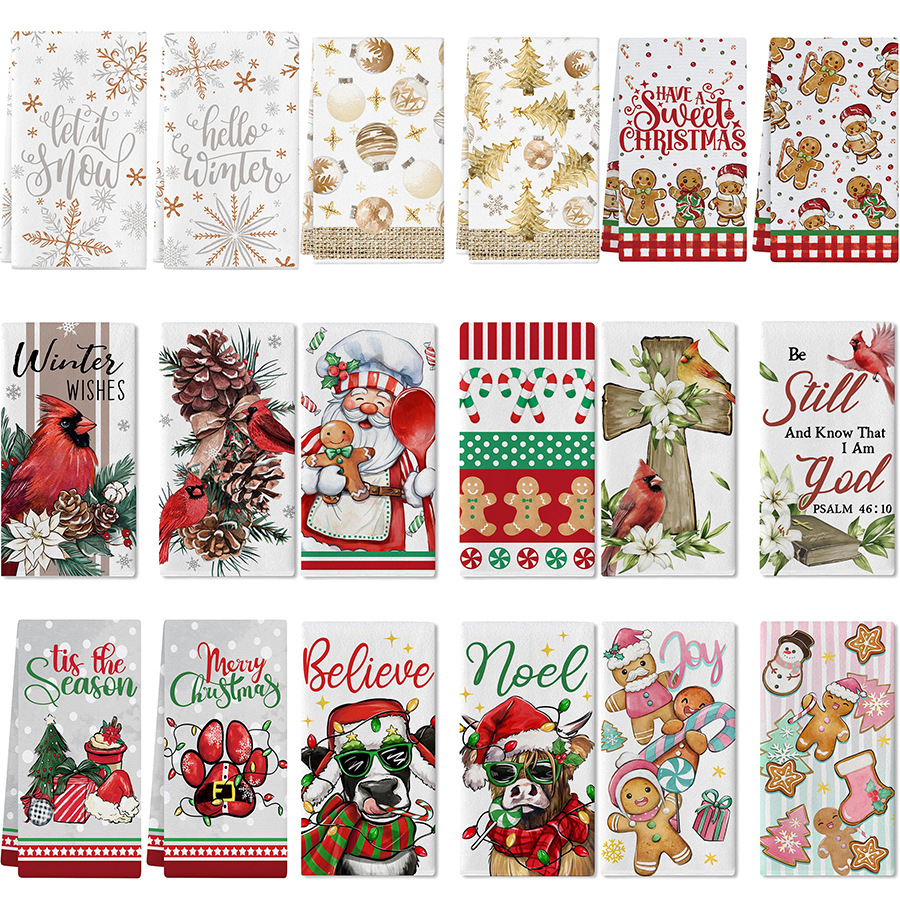 越境で人気のマイクロファイバー製サンタクロース柄タオル、キッチン用吸水性小型タオル、手拭きタオル、写真によるカスタムオーダー対応