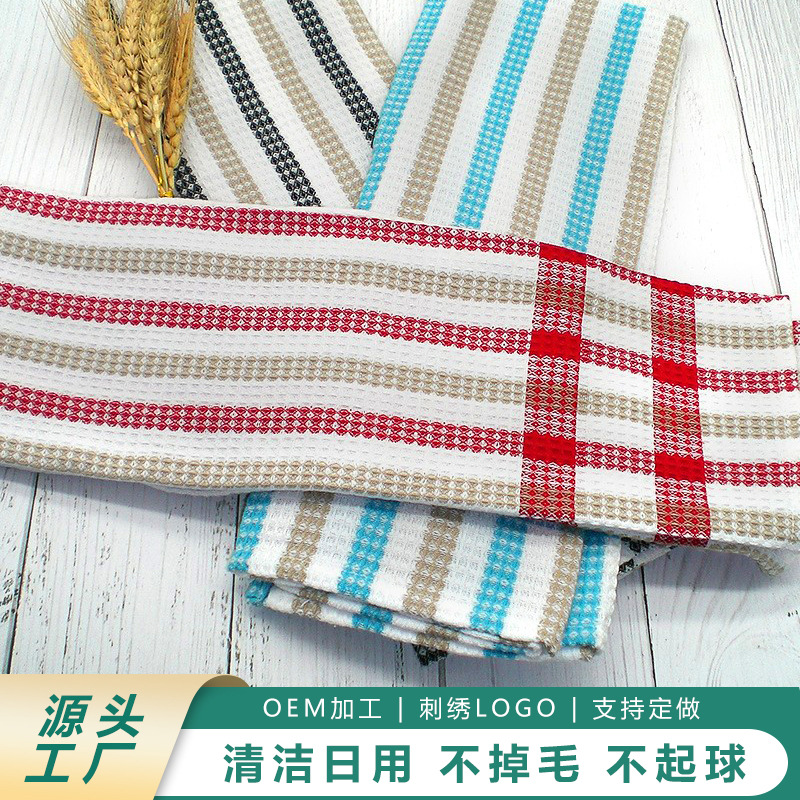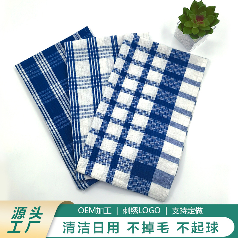 全棉色织茶巾大井字抹布厨房洗碗巾外贸出口可指定logo茶具