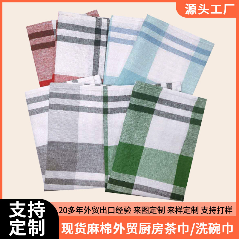 輸出オーダーメイドキッチンタオル高品質クロスボーダー外国貿易色織茶巾テーブルクロス麻布綿麻茶巾卸売り