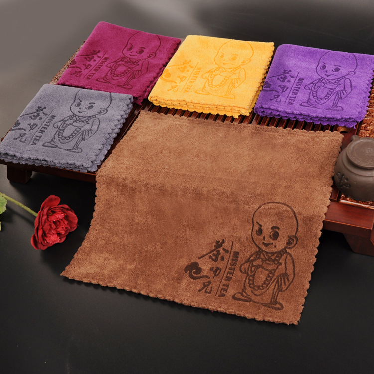 メーカー卸売り両面パイル極細繊維刺繍手描き茶巾ナプキン布快乾吸水洗浄角茶器部品