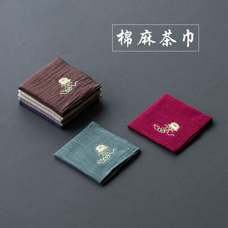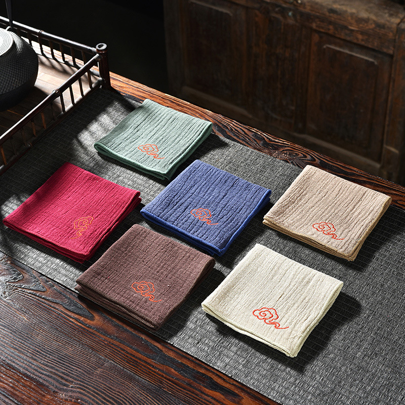 メーカー直販刺繍綿麻吸水茶巾厚手日本式禅意雑巾茶台雑巾カン夫茶部品