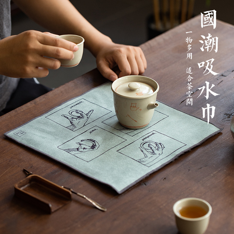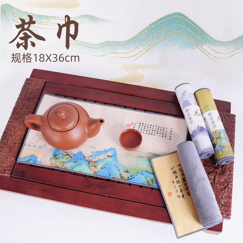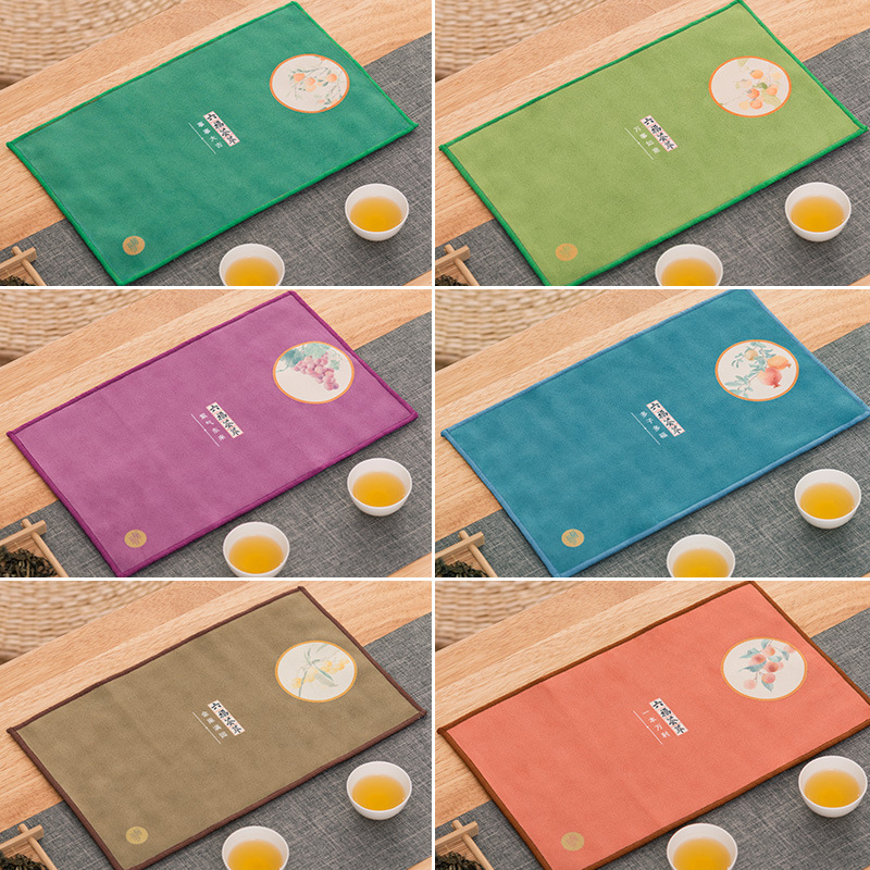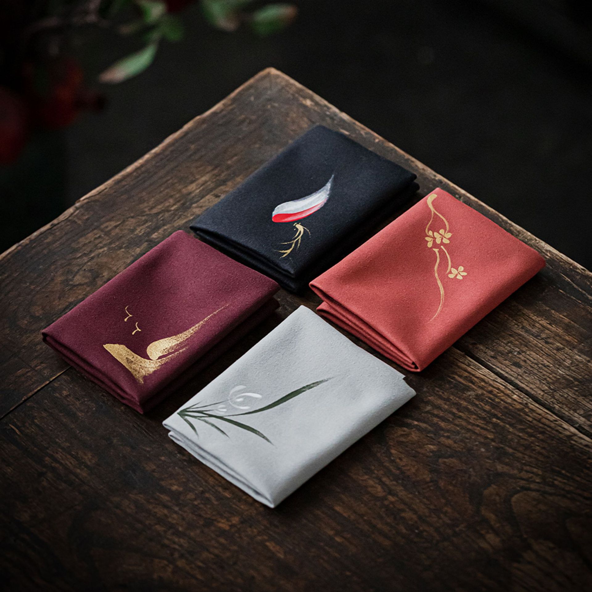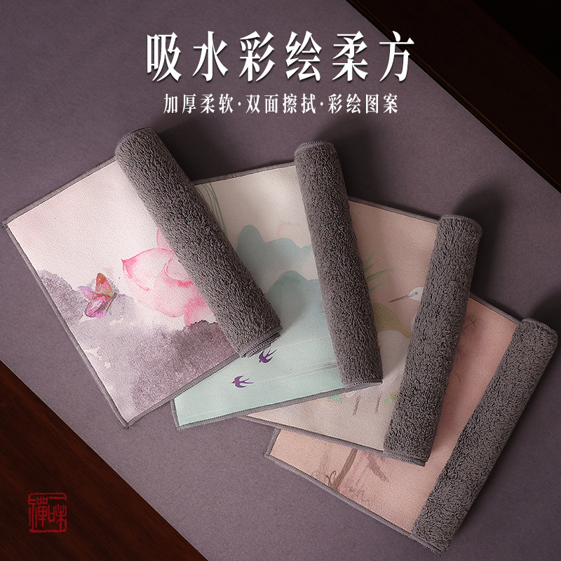 メーカー直販彩色絵茶巾高級スエード国潮古風方巾厚吸水茶マット茶布部品
