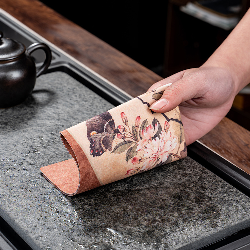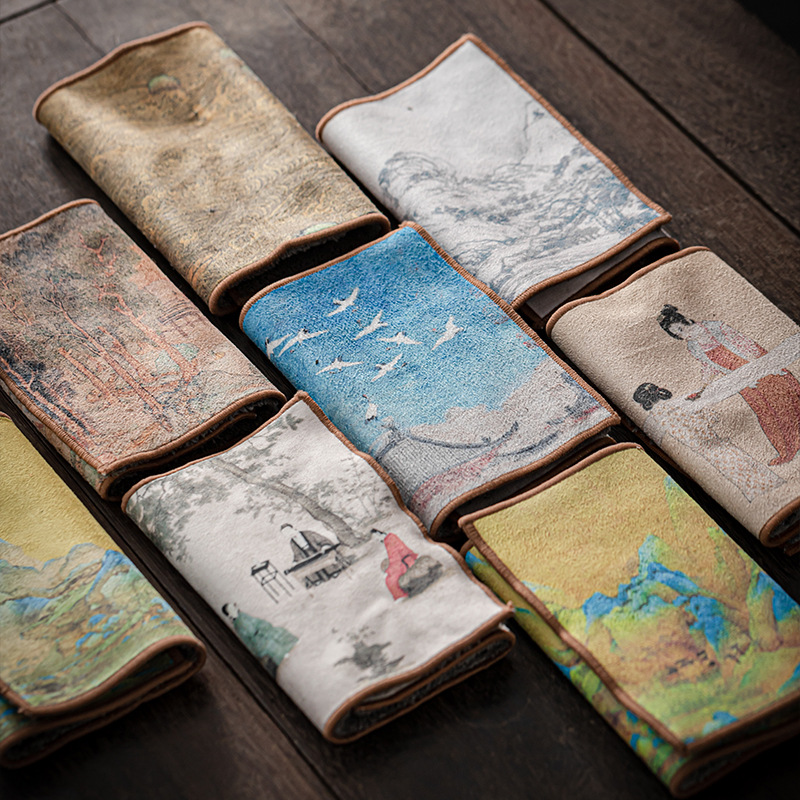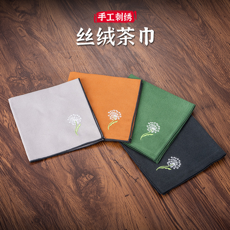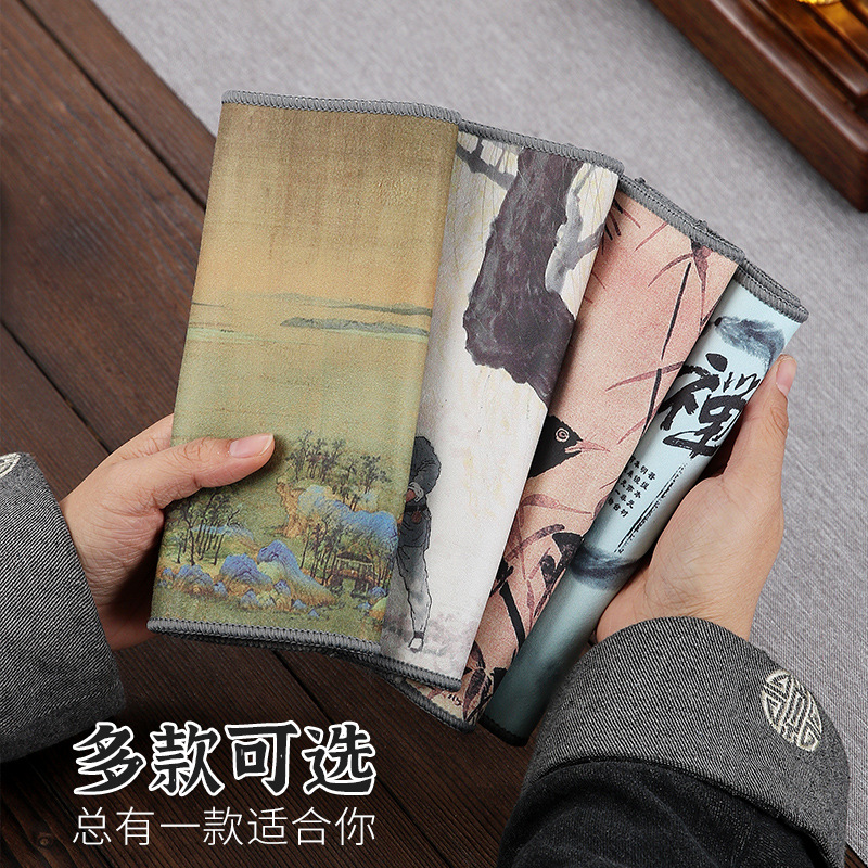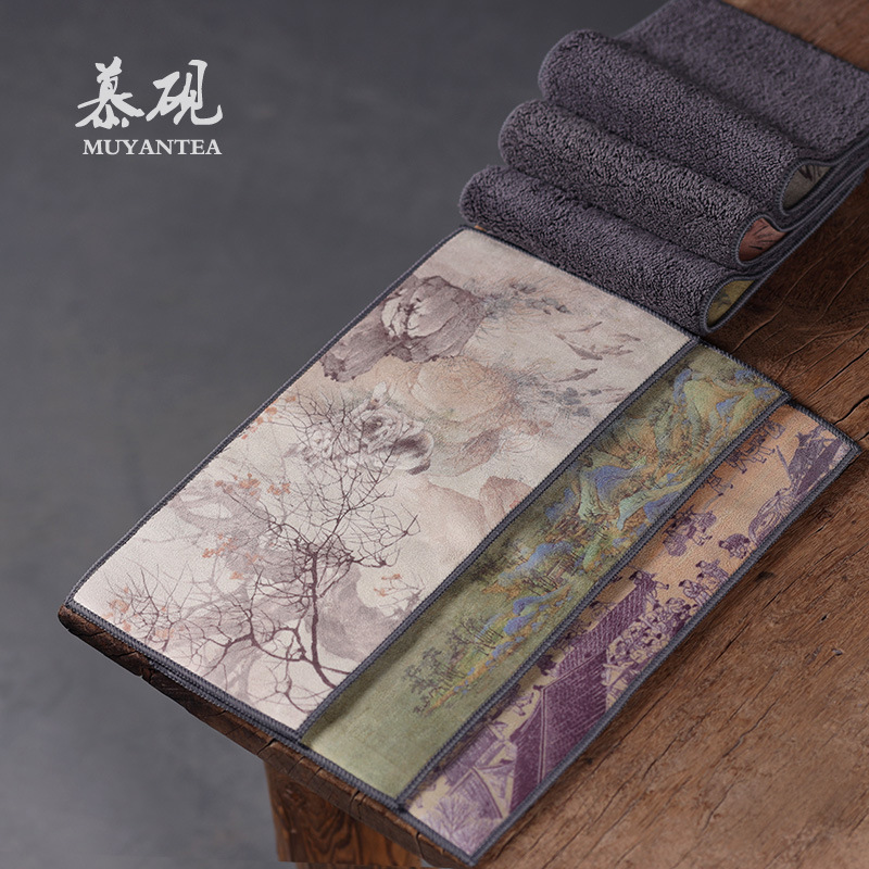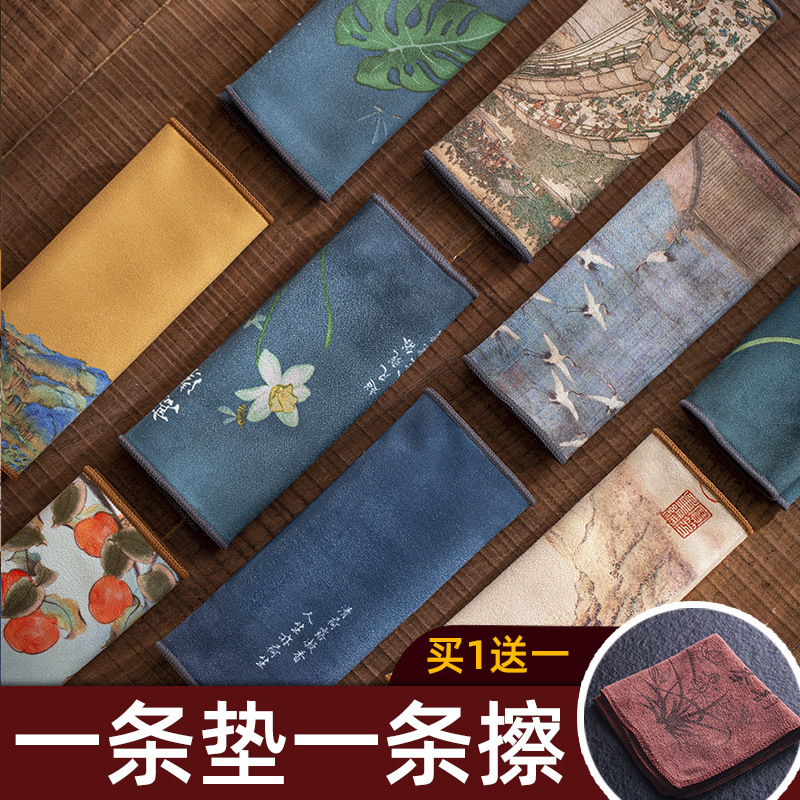 メーカー直販彩色絵茶巾高級スエード国潮古風方巾厚吸水茶マット茶布部品