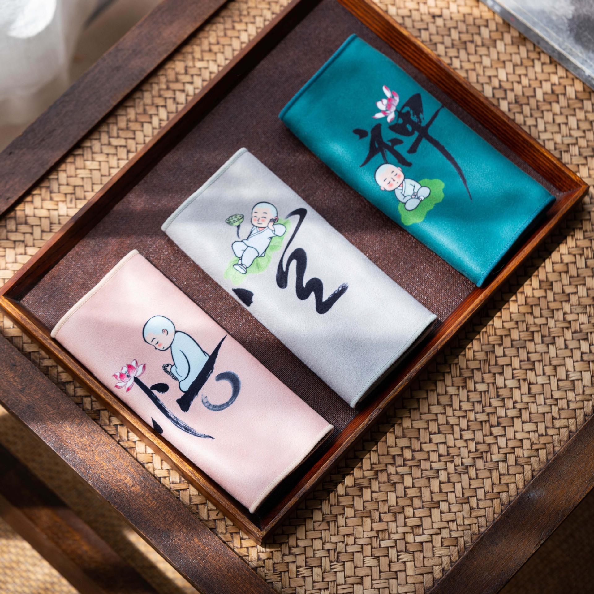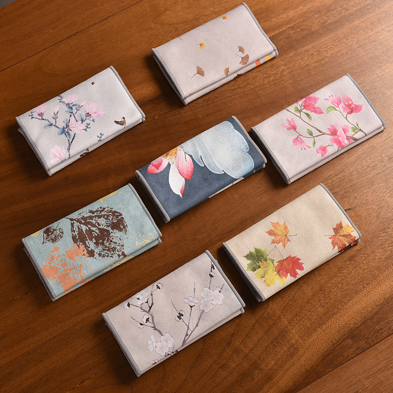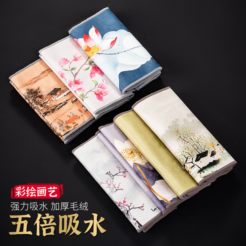 国潮風綿麻茶巾 超吸水コーラルベルベット スエード風乾燥茶巾 手作り茶巾 茶道茶道具 彩画茶巾