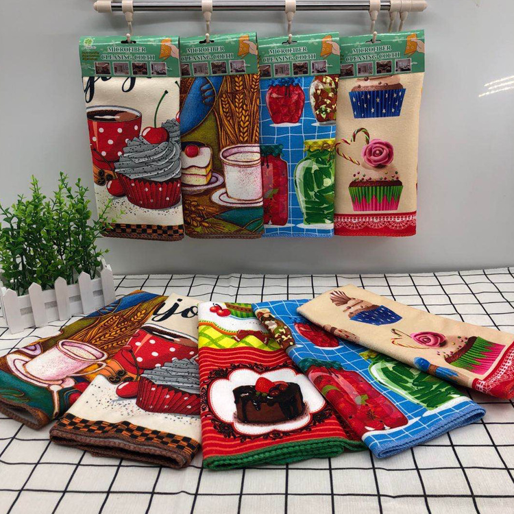 Amazon ティータオル カスタム マイクロファイバー プリント キッチン タオル 外国貿易注文は真空パック可能
