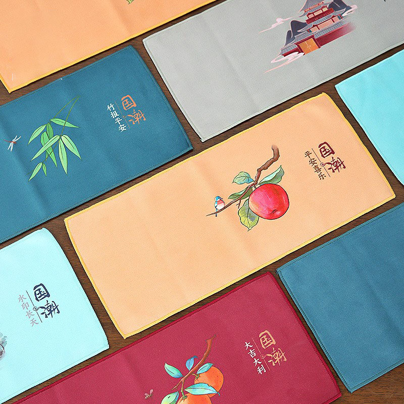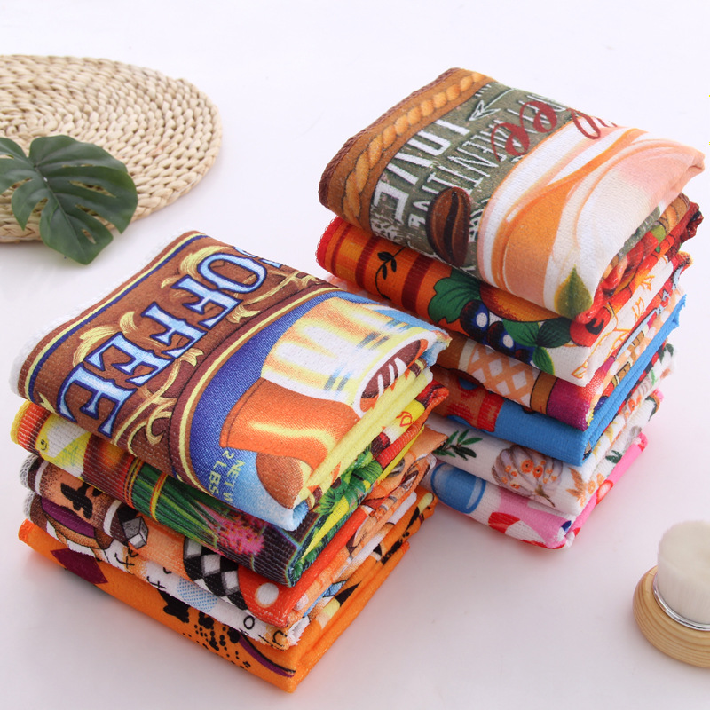 プリント超微細繊維布茶巾吸水対外貿易熱移転プリント雑巾は色あせない茶巾はロゴを印刷できる