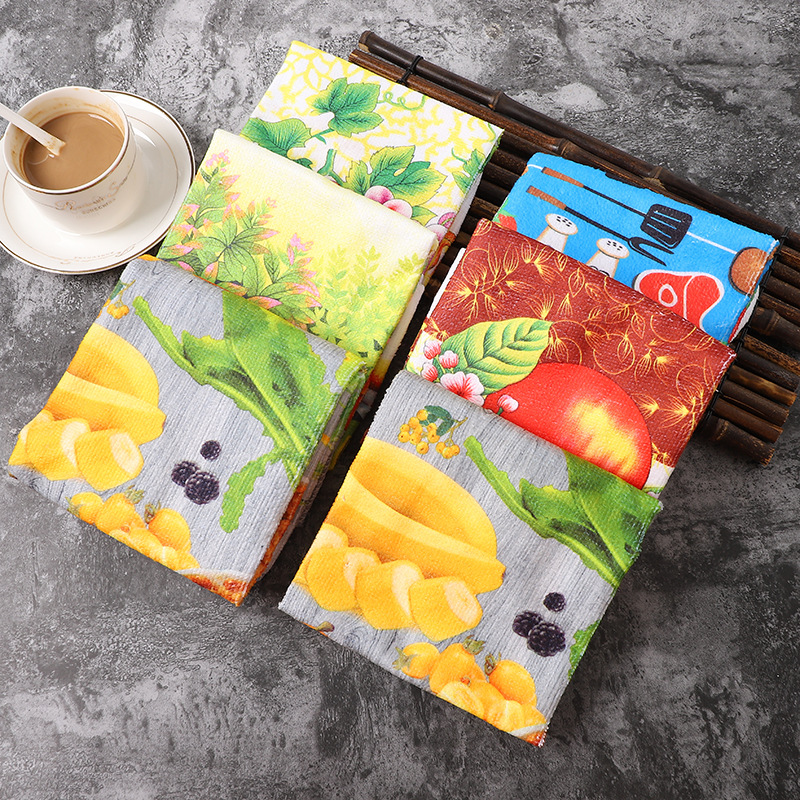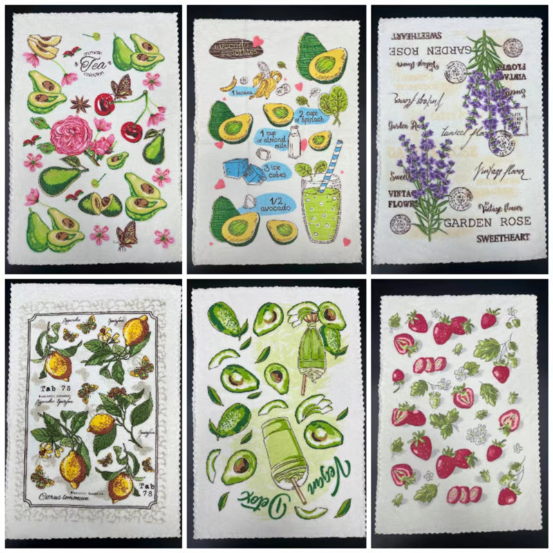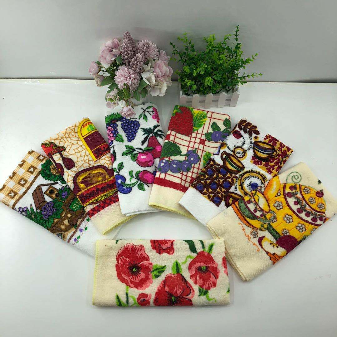 熱転写果物茶巾清新清潔タオル国境を越えて人気のある南米極細繊維布経編キッチンタオル