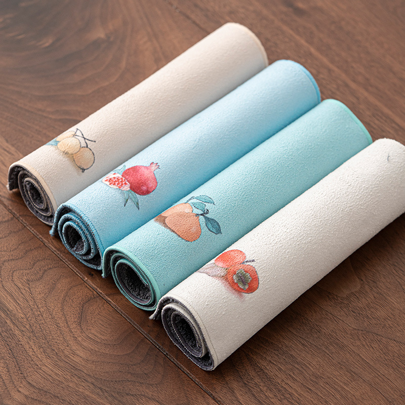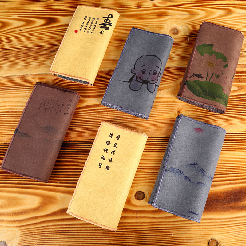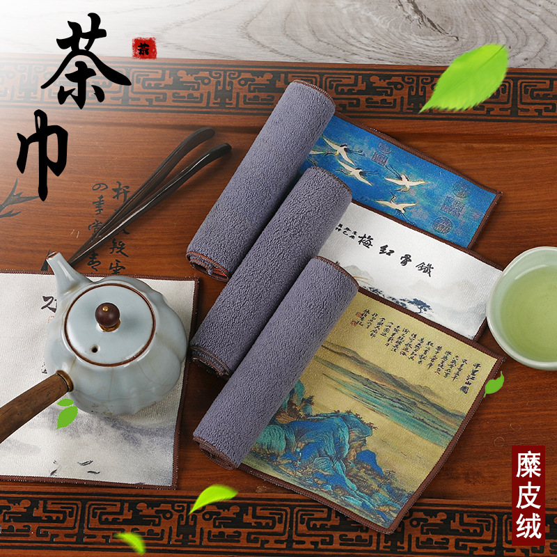 中国式スエードの小さい茶巾吸水プリントの小さい方巾禅意養壺巾シンプル茶卓雑巾茶道部品