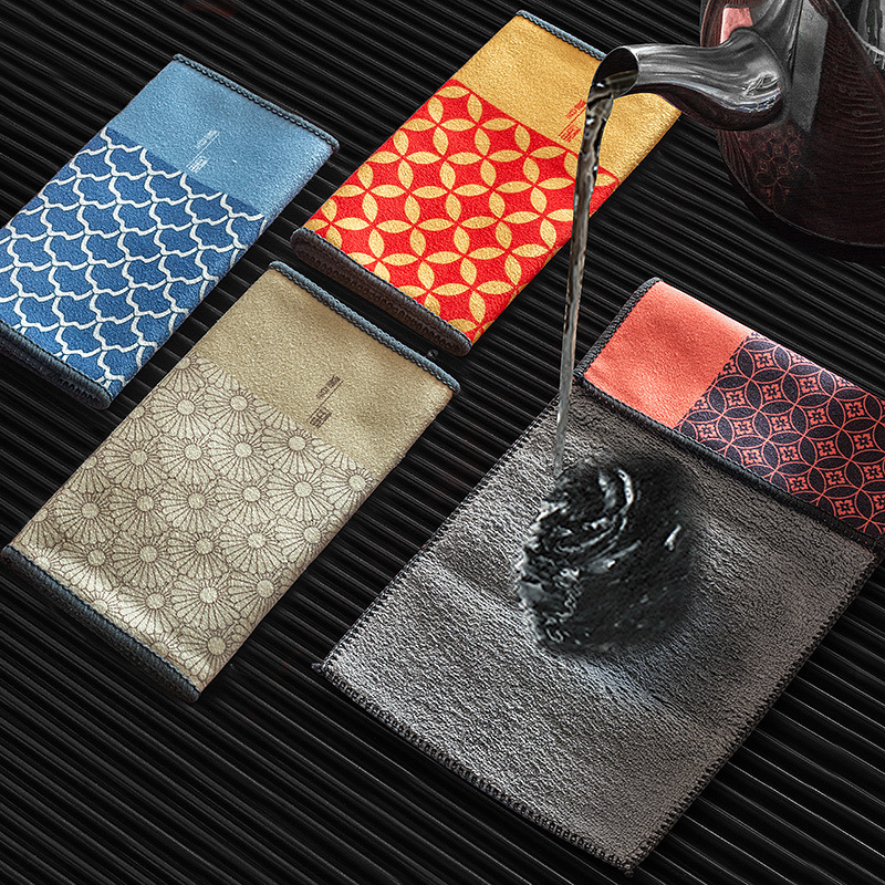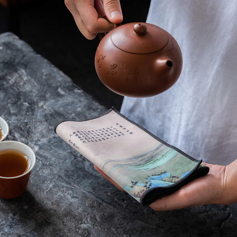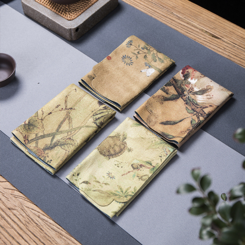 茶巾超微細繊維茶台茶器清潔巾プリント茶韻小方巾中国風茶芸茶盤雑巾