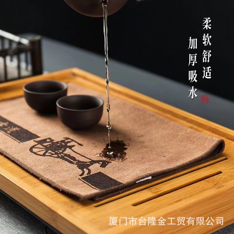 新中国式色絵シギ皮吸水乾燥泡茶巾布長方形抗シワ無毛禅意テーブルクロス茶道部品