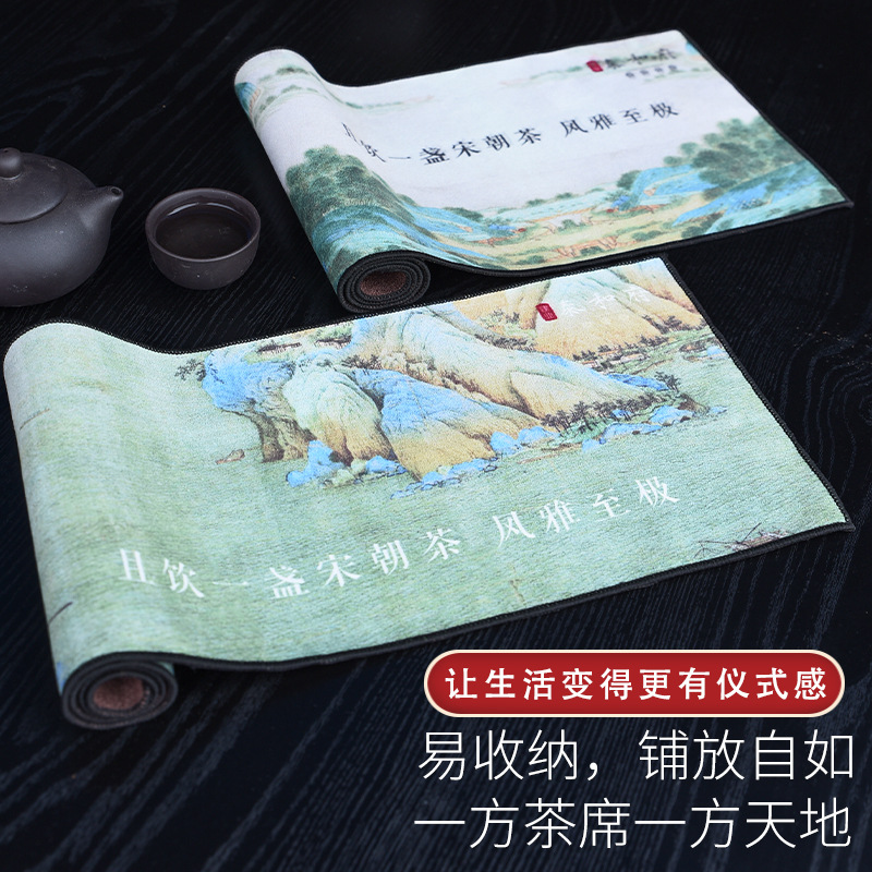 中国式禅意厚手のスエードの茶巾彩絵のぬいぐるみタオル吸水茶布テーブルクロス