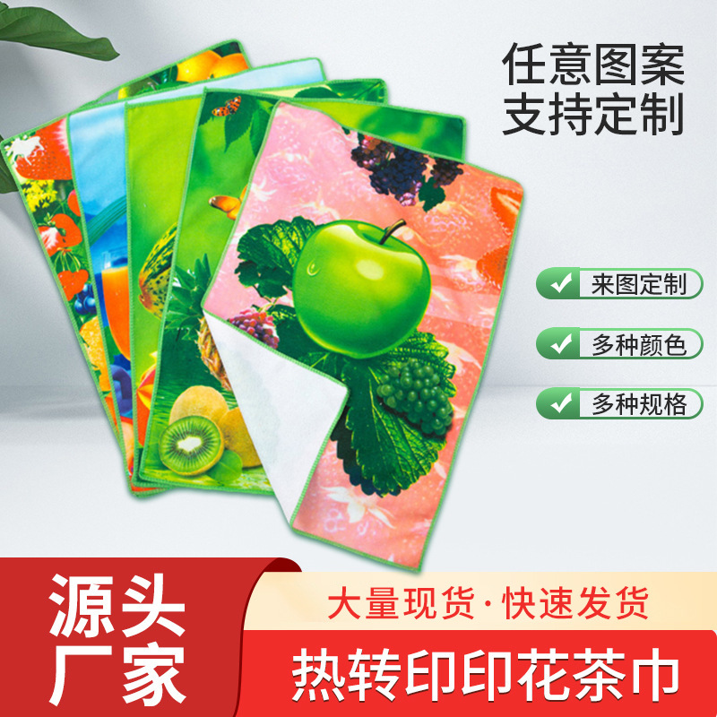 卸売り対外貿易茶巾極細繊維厨房清潔巾満底果物プリント熱転写茶巾印刷ロゴ