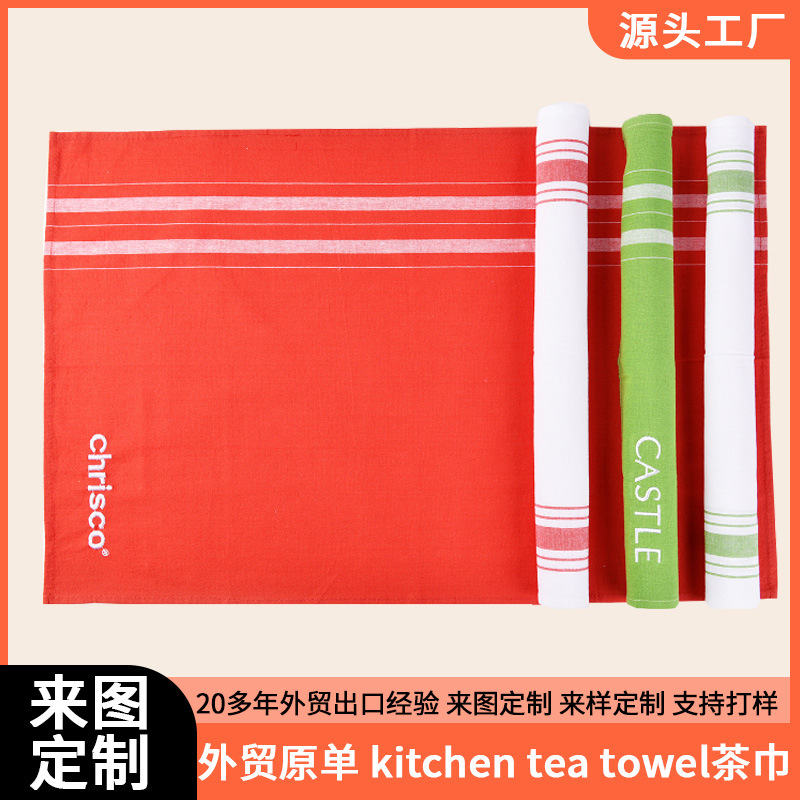 純綿ティータオル、純綿と麻の外国貿易用厚手ティーテーブルタオル、吸水性キッチン雑巾、食器洗い布、刺繍技術