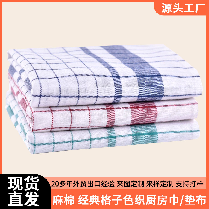 外国貿易オリジナルキッチンタオル日本製チェック柄ティータオル麻綿通気性カバー布パッド装飾布 3 色