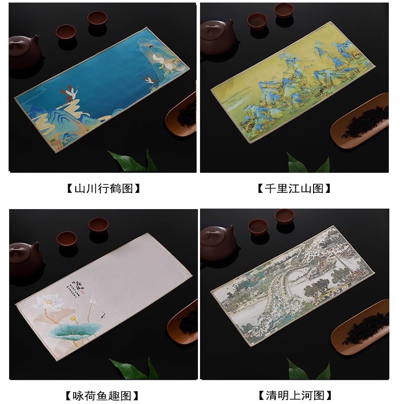 工場卸売 国風彩画茶巾 スエードベルベット 厚手吸水茶布 千里江山図茶席 サポート対応