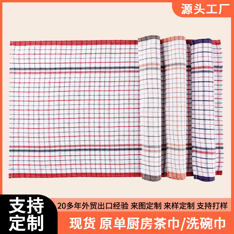 綿先染めチェック柄ストライプポリエステル綿ティータオル外国貿易キッチンタオルハンドタオル雑巾増粘吸水性日常使用