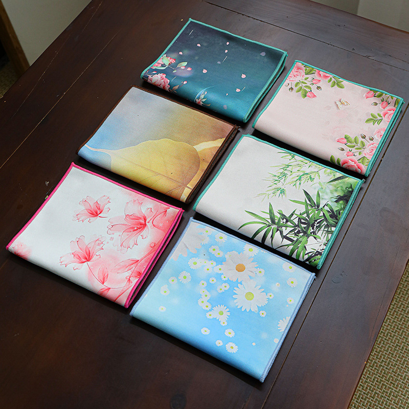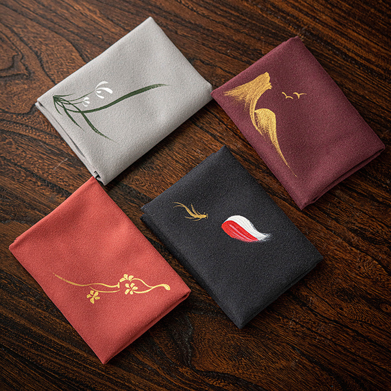 高級スエード生地の茶巾、厚手で吸水性があり、毛羽立ちや色落ちなし、彩り豊かな茶マット、禅意茶道プリント