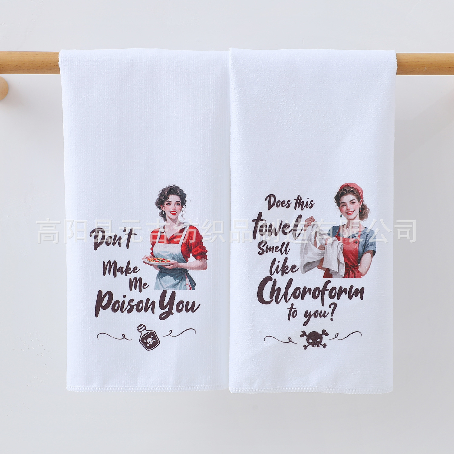 Temu Shein工場はポリエステルデジタル印刷趣味の台所の皿洗いタオル百潔布を貼り付けた