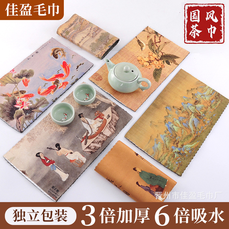 彩色絵茶巾茶布吸水高級厚手テーブルクロス中国式工夫茶具部品ティーポット雑巾タオルテーブルマット