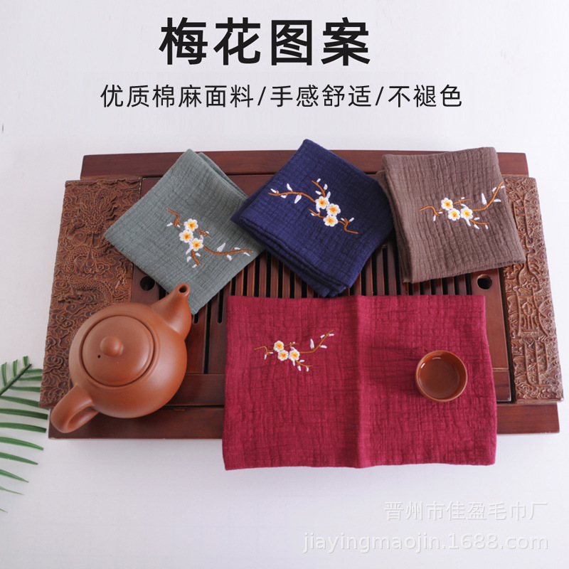 綿麻茶巾二重刺繍茶巾茶台雑巾厚手吸水茶巾中国風独立包装