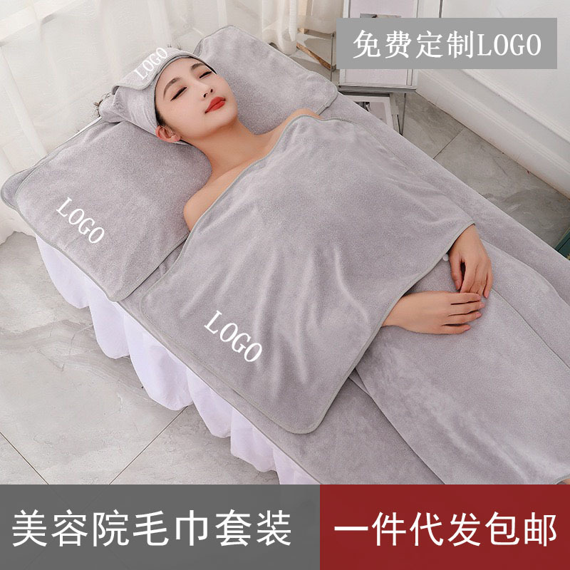 美容院タオル専用セット包頭タオルベッドタオル皮膚管理タオルバスタオルセットはロゴを印刷できます。