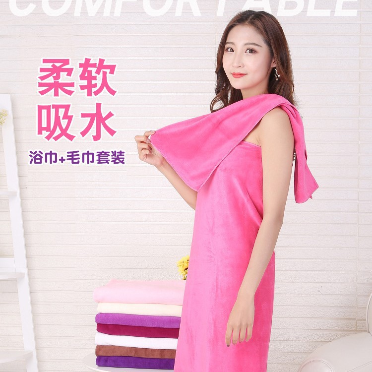 美容院タオル卸売りロゴ極細繊維マジックテープ包頭巾敷床バスタオル浴スカートセット