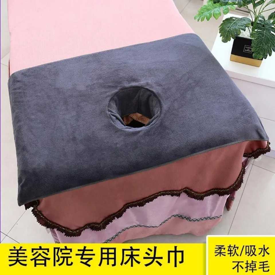 穴付きフェイシャルタオル、ビューティーサロンベッドサイドタオル、柔らかく吸水性のあるマッサージマッサージマット、フェイシャルタオル、ベッドタオル、ロゴ印刷可能