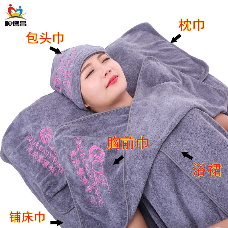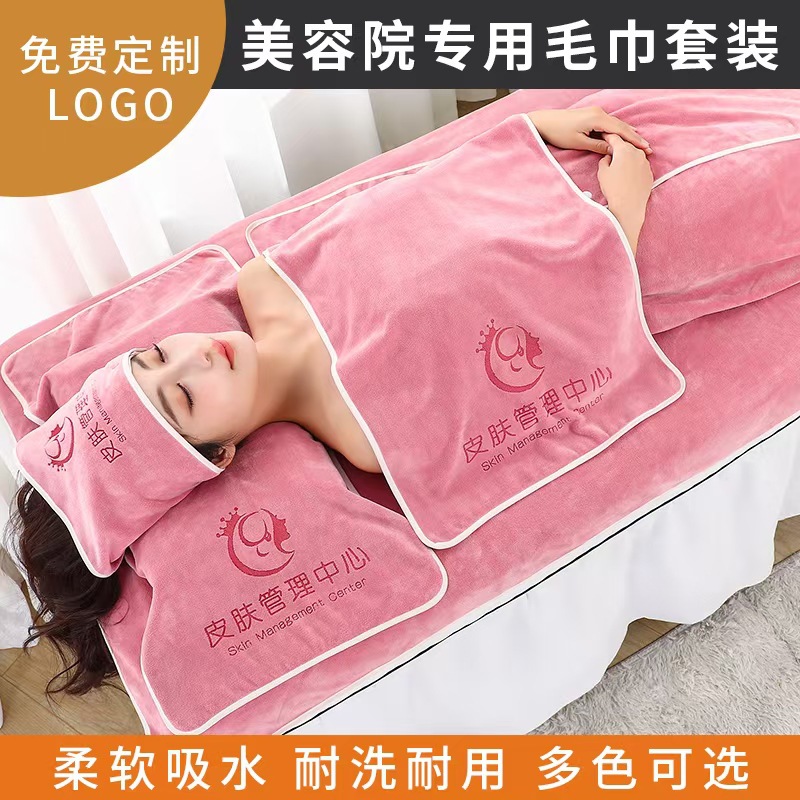 美容院バスタオル卸売りロゴタオルバススカートベッドタオルセットサンゴパイル厚手美容院専用セット
