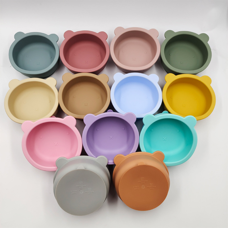 人気のある赤ちゃんの食事皿は、熊の爪のシリコンボウルの赤ちゃんが自主的に食事をする訓練皿の子供の吸盤食器です