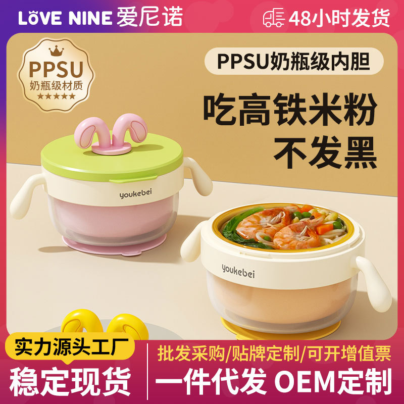 ベビー PPSU 恒温水充填断熱ボウルフードボウル落下防止高速鉄粉米食器セットベビー食事ボウル工場