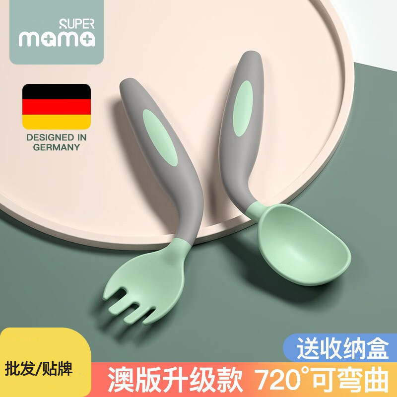 ベビースプーン 赤ちゃんが食べることを学ぶための食器 トレーニングフォークとスプーンセット 補助食品 曲がるヘッドが曲がったりねじれる