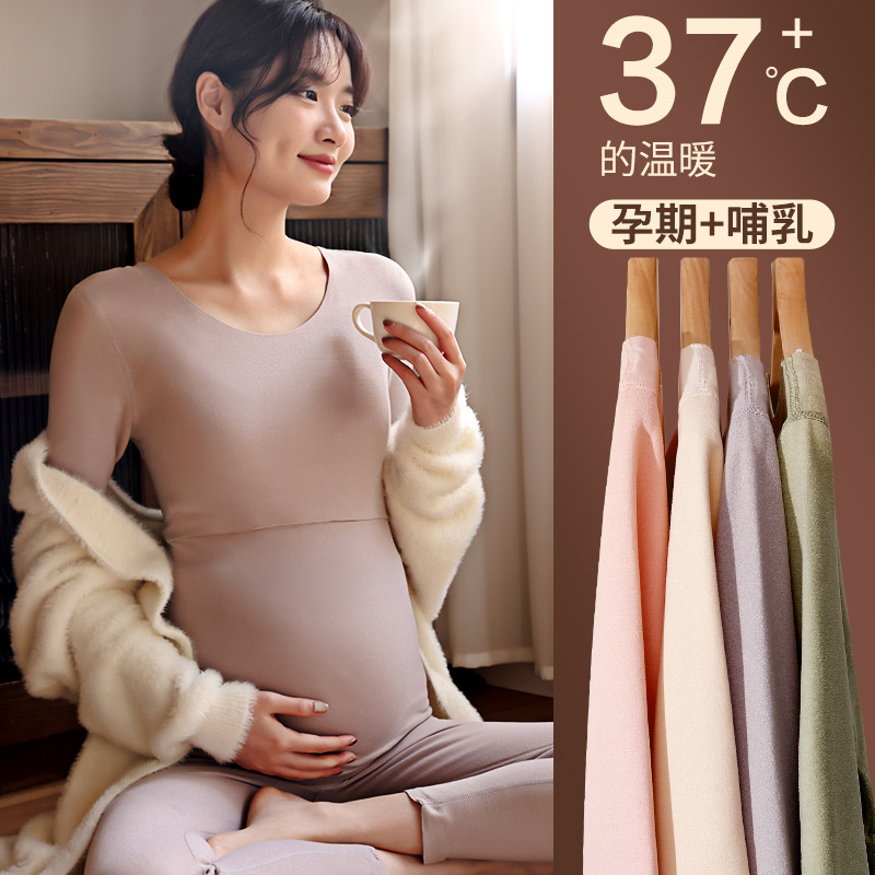 妊婦秋衣秋ズボンセット妊娠中保温下着産後授乳授乳服秋冬月子服徳絨毛