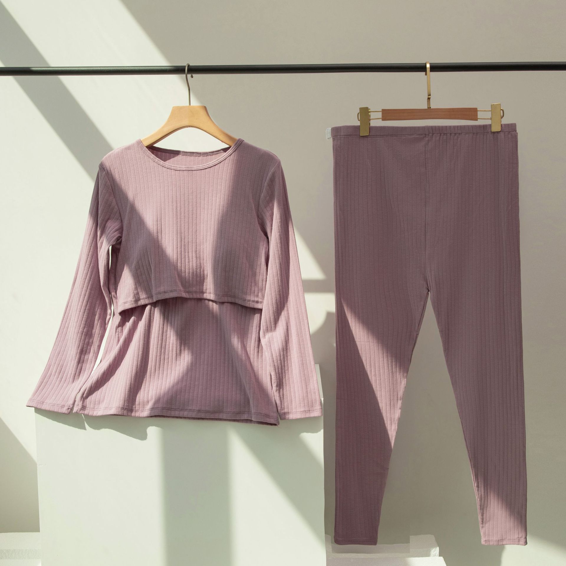 妊婦秋衣秋ズボンセット哺乳パジャマ保温下着秋冬モーデール月子服授乳服綿熙