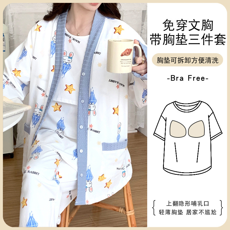 【スポット6107】クロスボーダー外国貿易春夏パジャマベスト3点セットホームウェアセット授乳パジャマ