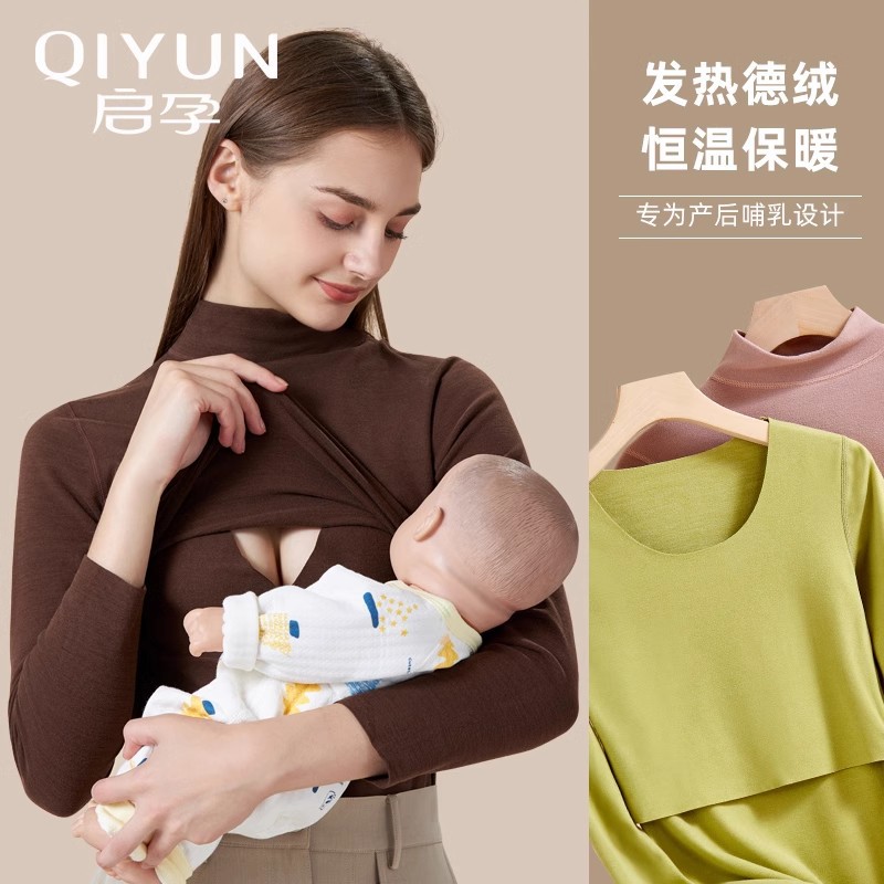 授乳秋衣の上着の産後の底のシャツの徳の絨毯の保温の下着はクリームの秋冬のパジャマの大きいサイズの月子服にあげます。