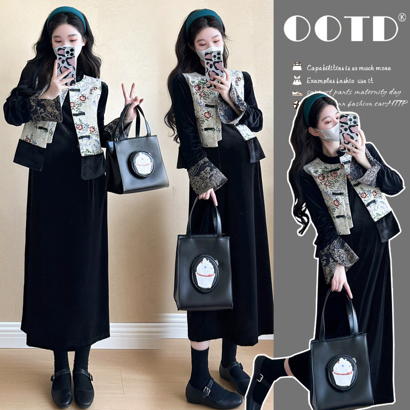 2024新型秋冬タイプの妊婦服にベルベットをつけて、ゆったりした長袖のガードルを厚くして、辛いお母さんのセットを外出して妊娠しています