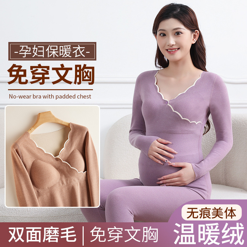 妊婦の保温下着セット秋衣秋ズボン徳絨毛と胸のパッドはブラジャーを着用しないで授乳します。