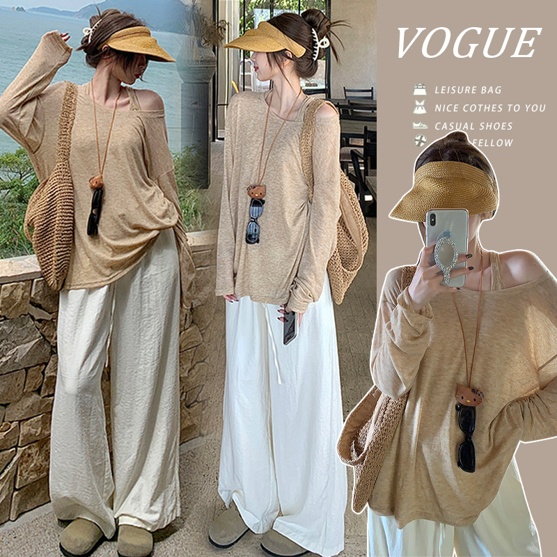 2025夏新作韓国風おしゃれシンプルスリムスクエアカラーサスペンダースカート+日焼け止めシャツ2点セット