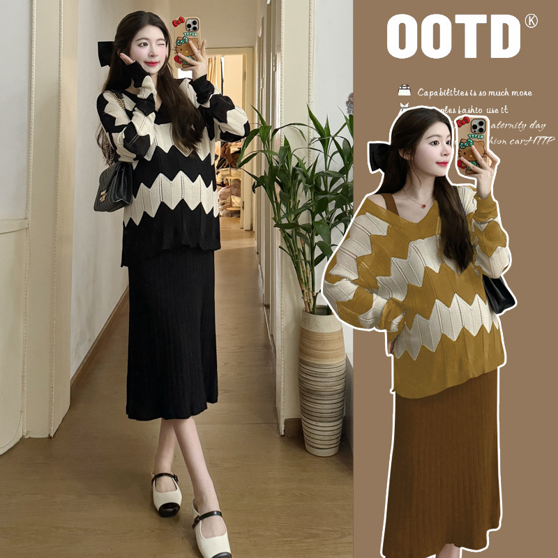 2024秋冬新作妊婦服韓国版気質妊婦服セット厚手ゆったり妊婦セーターワンピース